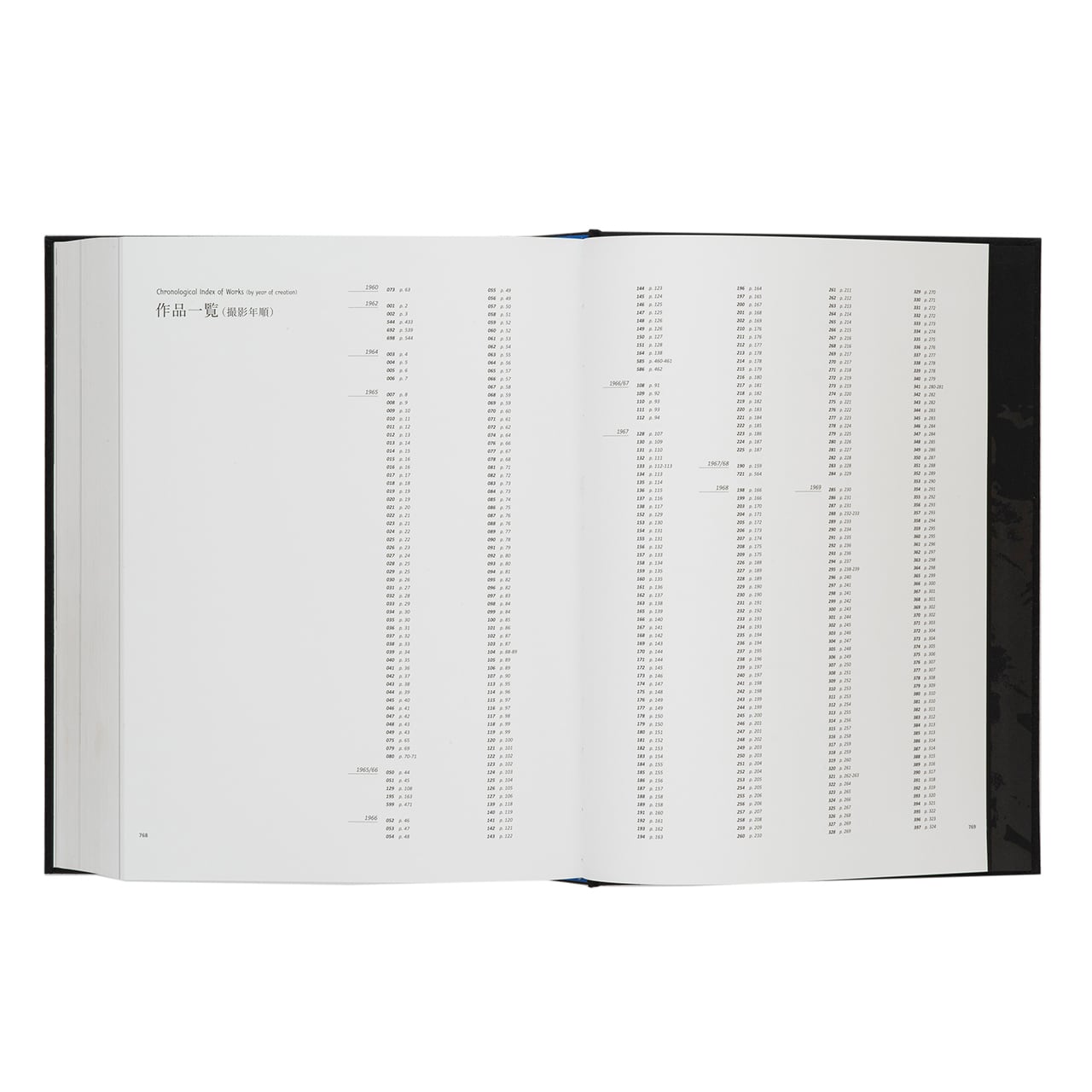 アーカイヴ930点の撮影場所、撮影年、イメージサイズを詳細に記し、作品が掲載された雑誌などの初出の時系列順に分類された“作品一覧”を掲載